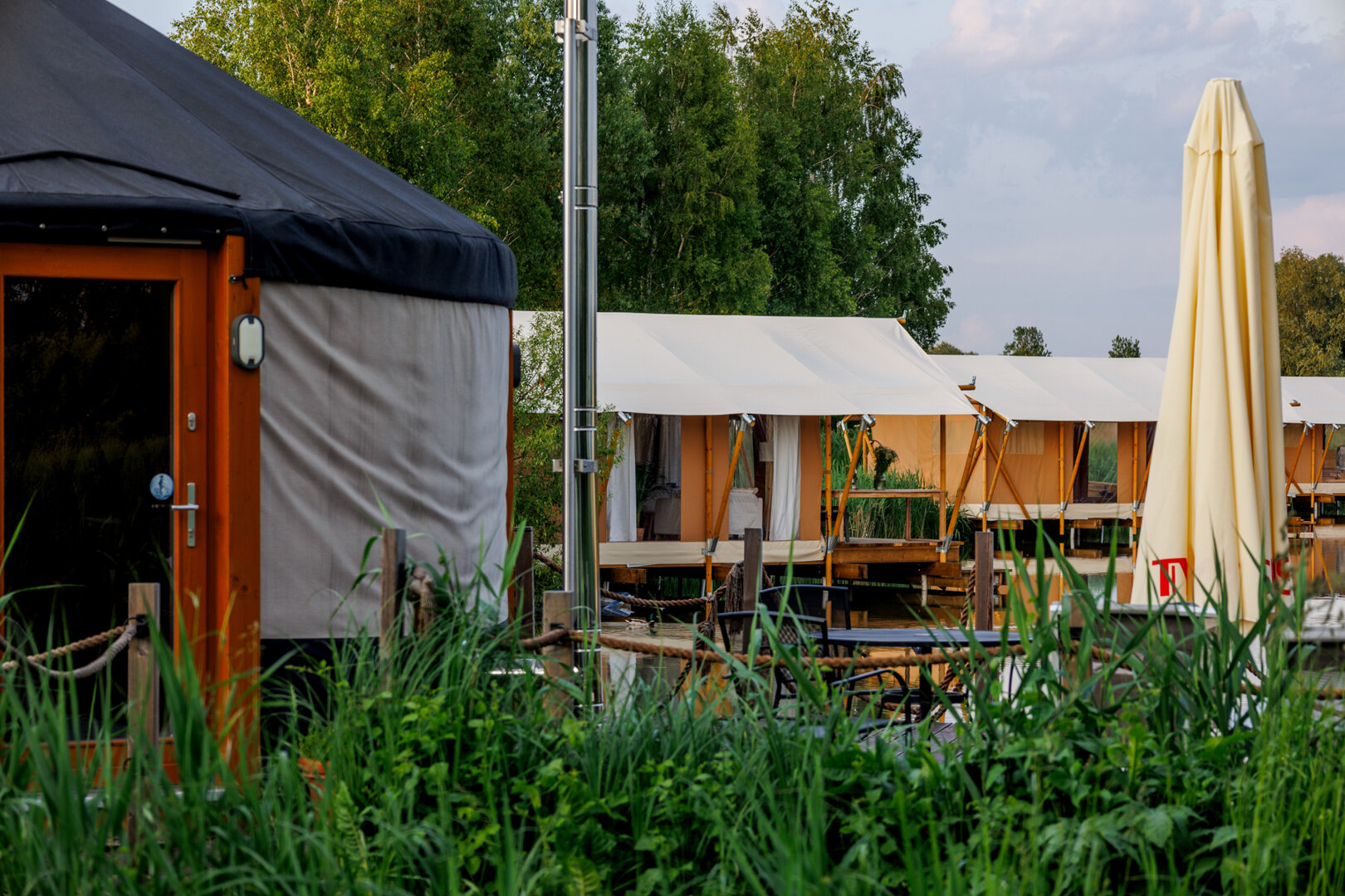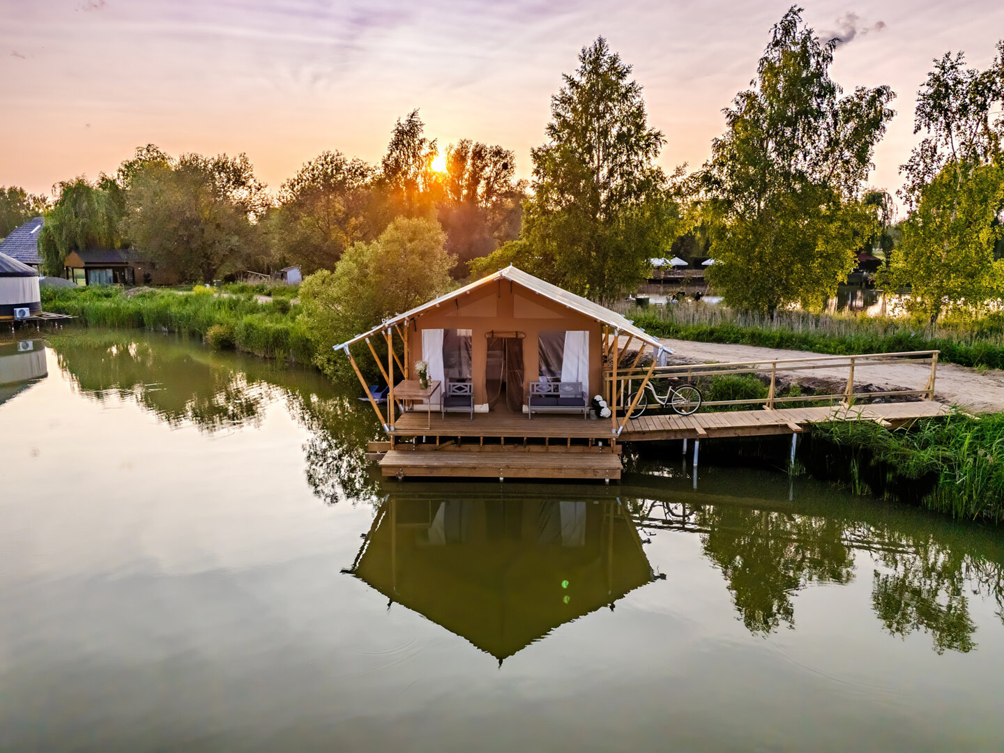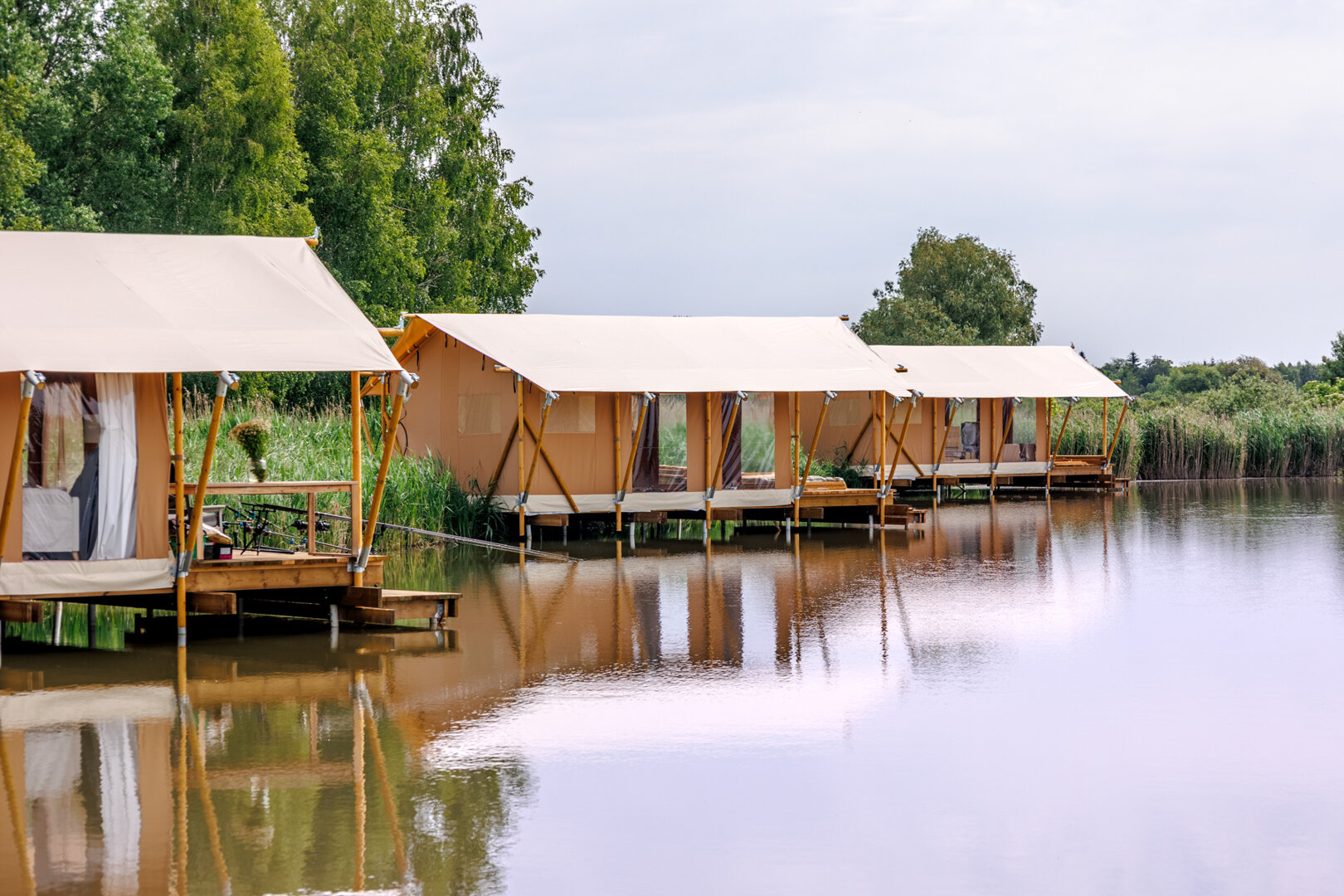 -Namiot jest nad wodą na palach