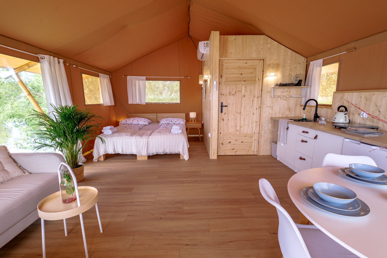 -Namiot jest nad wodą na palach -aneks kuchenny -sypialnia -łazienka -zadaszony taras -bezpośredni dostęp do wody -klimatyzacja
